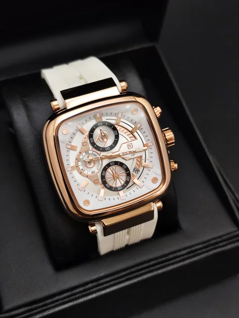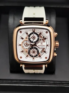بدون شک این مدل مربعی ریوارد پرفروشترین طرح این روزهای مجموعه درنیکا واچ است که رنگ پرطرفدار آن نیز همین رنگ سفید دوراستیل طلایی است. ساعت مردانه سه موتوره ریوارد مدل RD831509M با جذابیت فوقالعاده، دارای سه موتور فعال (موتور بالایی صدم ثانیه، موتور پایینی ثانیه شمار و موتور سمت چپی آن دقیقه شمار یا کرنو) است. اگر بهدنبال یک کادوی مناسب و شیک برای پارتنر خود هستید، ما این مدل جذاب را بهشدت پیشنهاد میکنیم. این ساعت به همراه باکس چرمی، ساک دستی و کارت گارانتی تقدیم شما عزیزان خواهد شد.